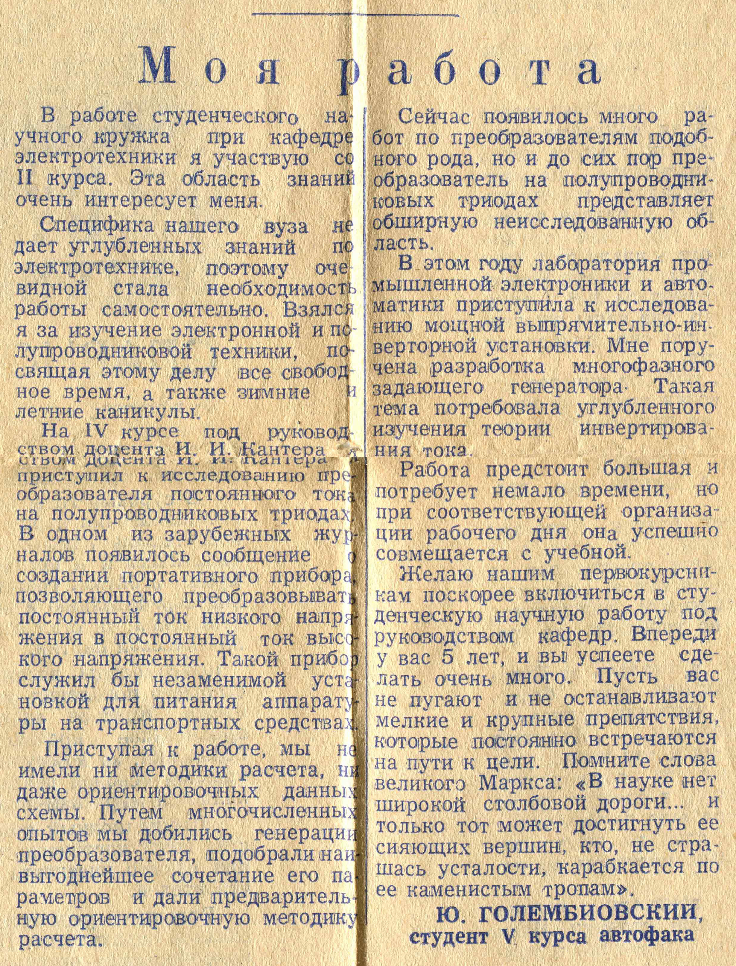 В 1954 году избран на должность доцента кафедры «Электротехника и электрооборудование».