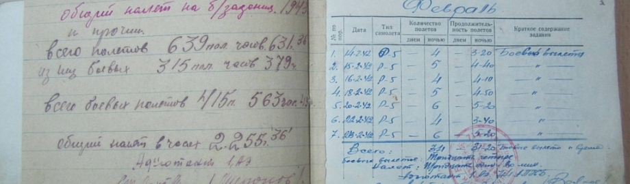 Страница личной лётной книжки А.П. Понукалина со сведениями о награждении