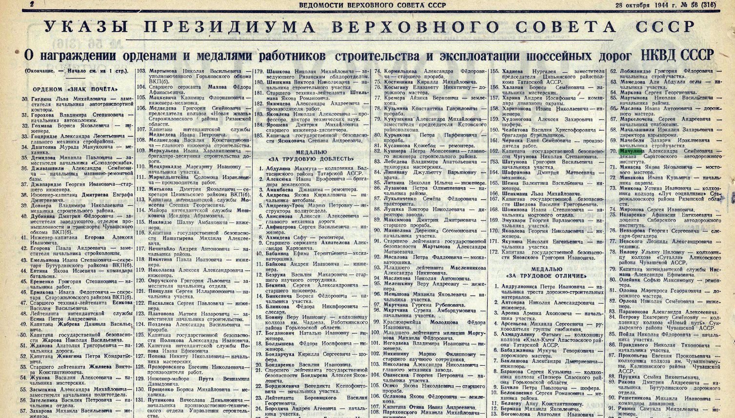 Указы Президиума Верховного Совета / Ведомости Верховного Совета Союза Советских Социалистических Республик. - 28 октября 1944 г. - № 56 (316)