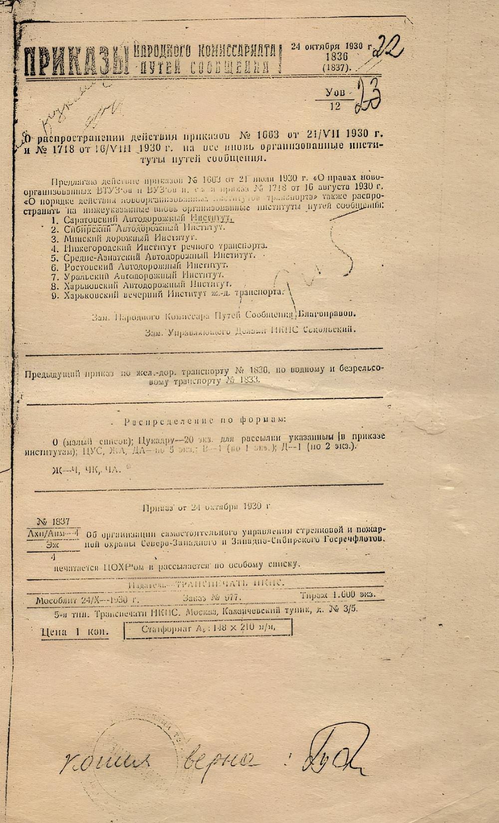 21 июля 1930 г. Народным комиссариатом путей сообщений был издан приказ № 1663 об организации в Саратове автодорожного института. Директором был назначен 37-летний работник Орловского губсовнархоза Евсей Маркович Цалихин.